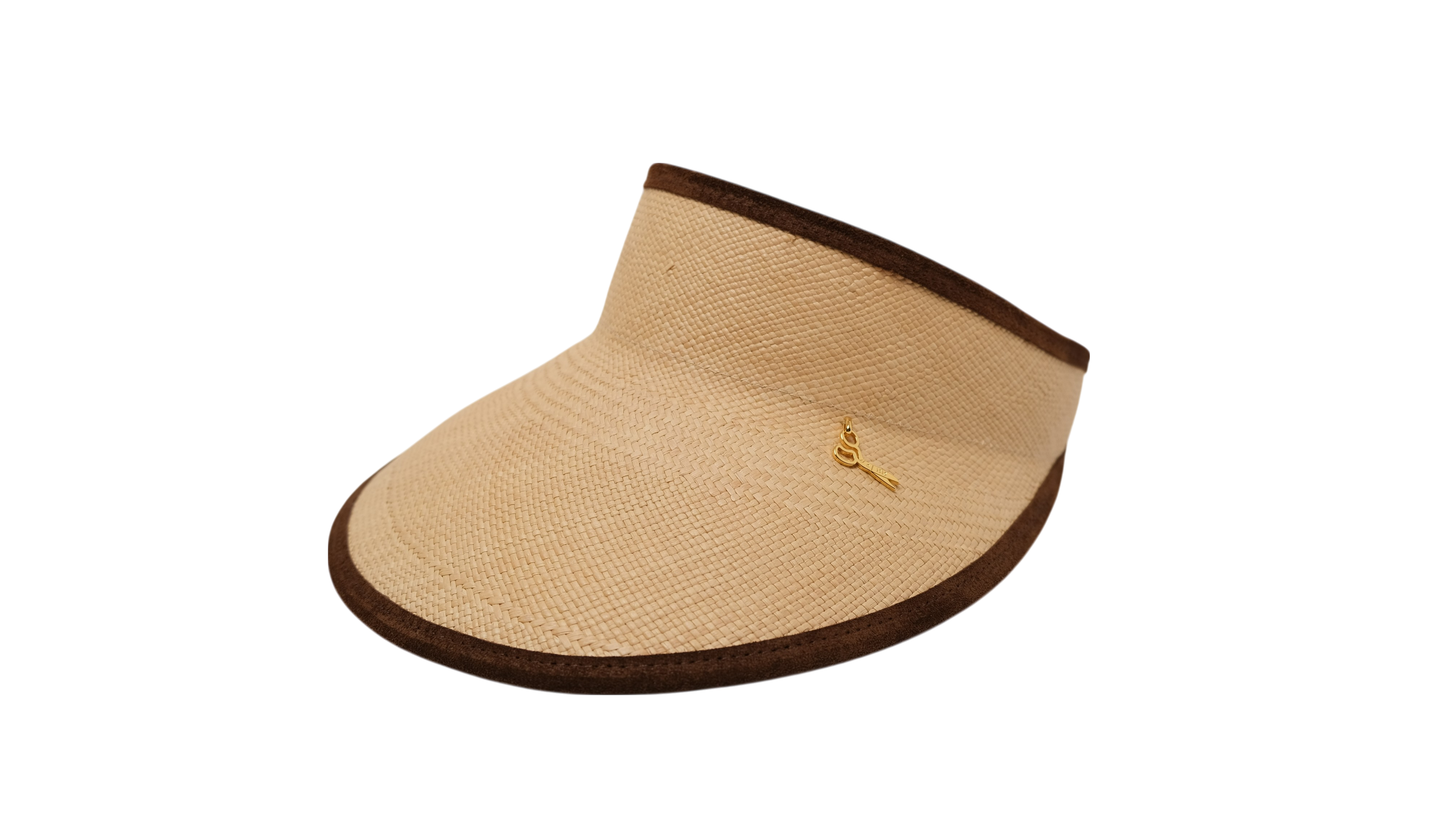Visiera in panama con bordo in camoscio e ciondolo oro