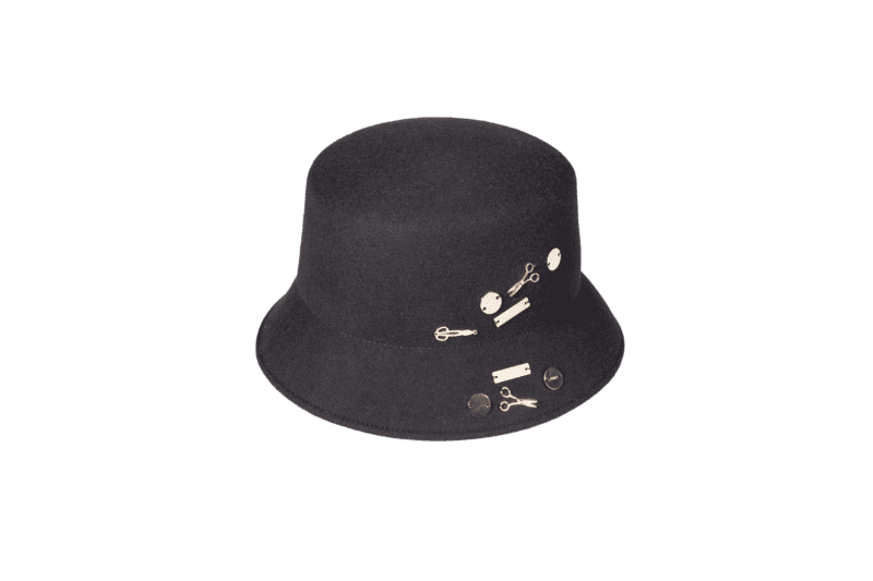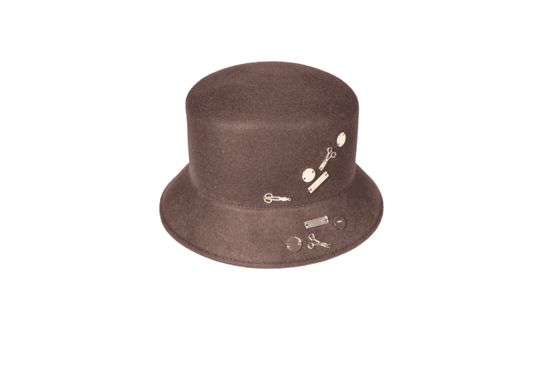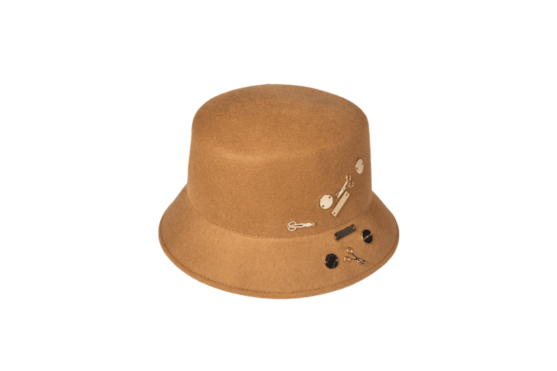 Pescatore gioiello in lana merino con dettagli oro applicati a mano.