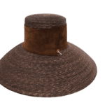 Ranger in carta crochet con tesa rialzata bordata in camoscio,cinturino e lacci sottogola in cotone, chiusura in bambù e dettagli in camoscio