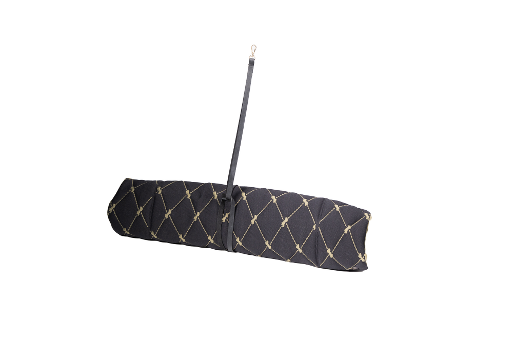 Cuccia da viaggio arrotolabile con tracolla in pelle invecchiata e dettagli logo applicati a mano