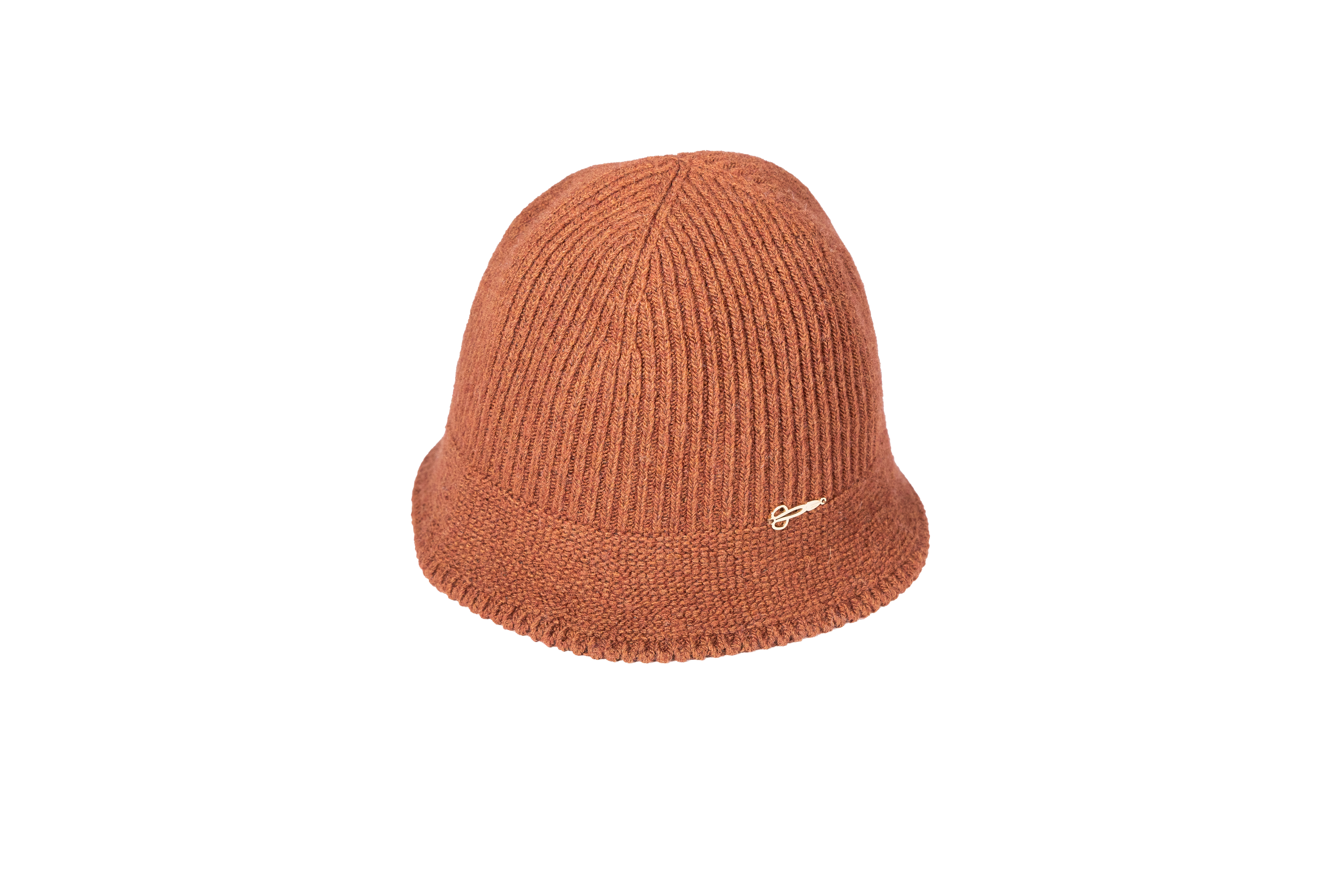 Cloche in misto cachemire riciclato con dettaglio logo applicato a mano.