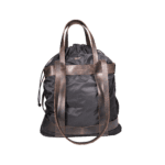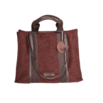 Tote bag grande in mohair con manici in cotone, tracolla regolabile in pelle invecchiata, dotata di tasca interna e charm cappello.