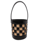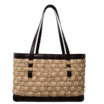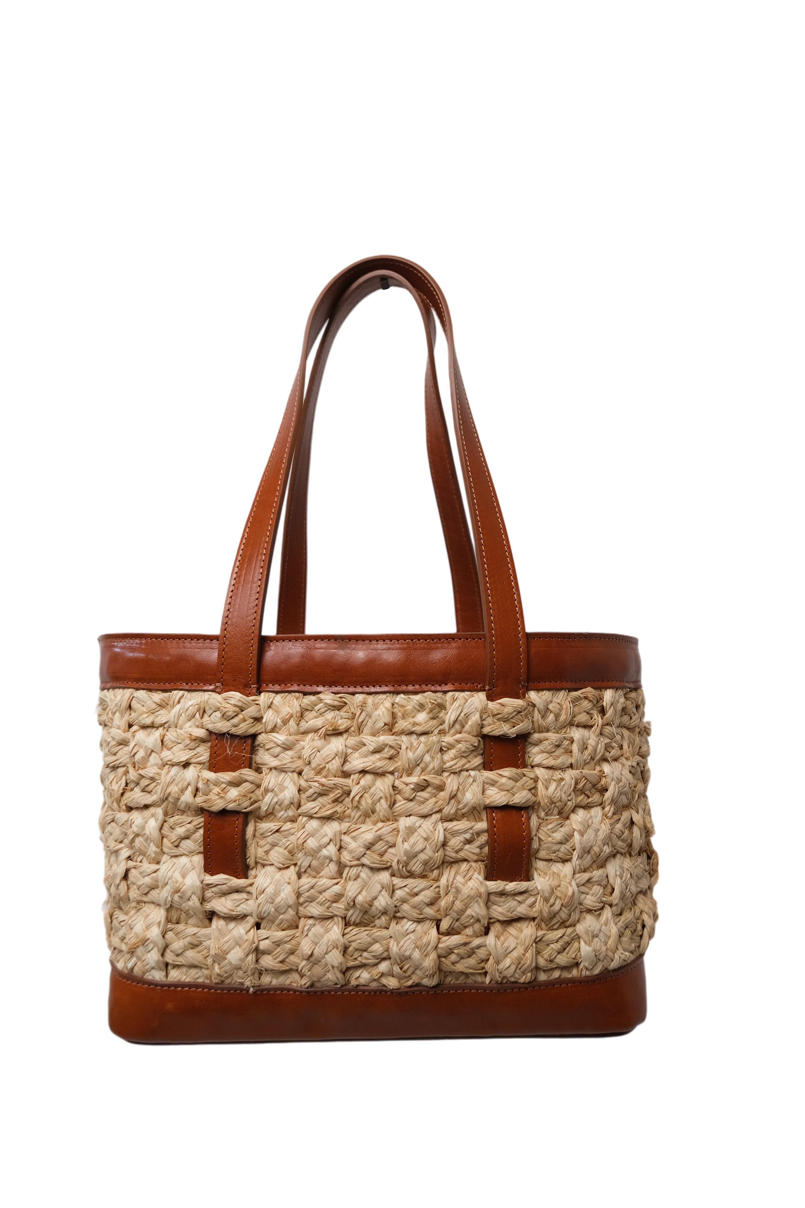Borsa media in treccia di raffia intrecciata a mano con manici,bordo e dettagli in pelle