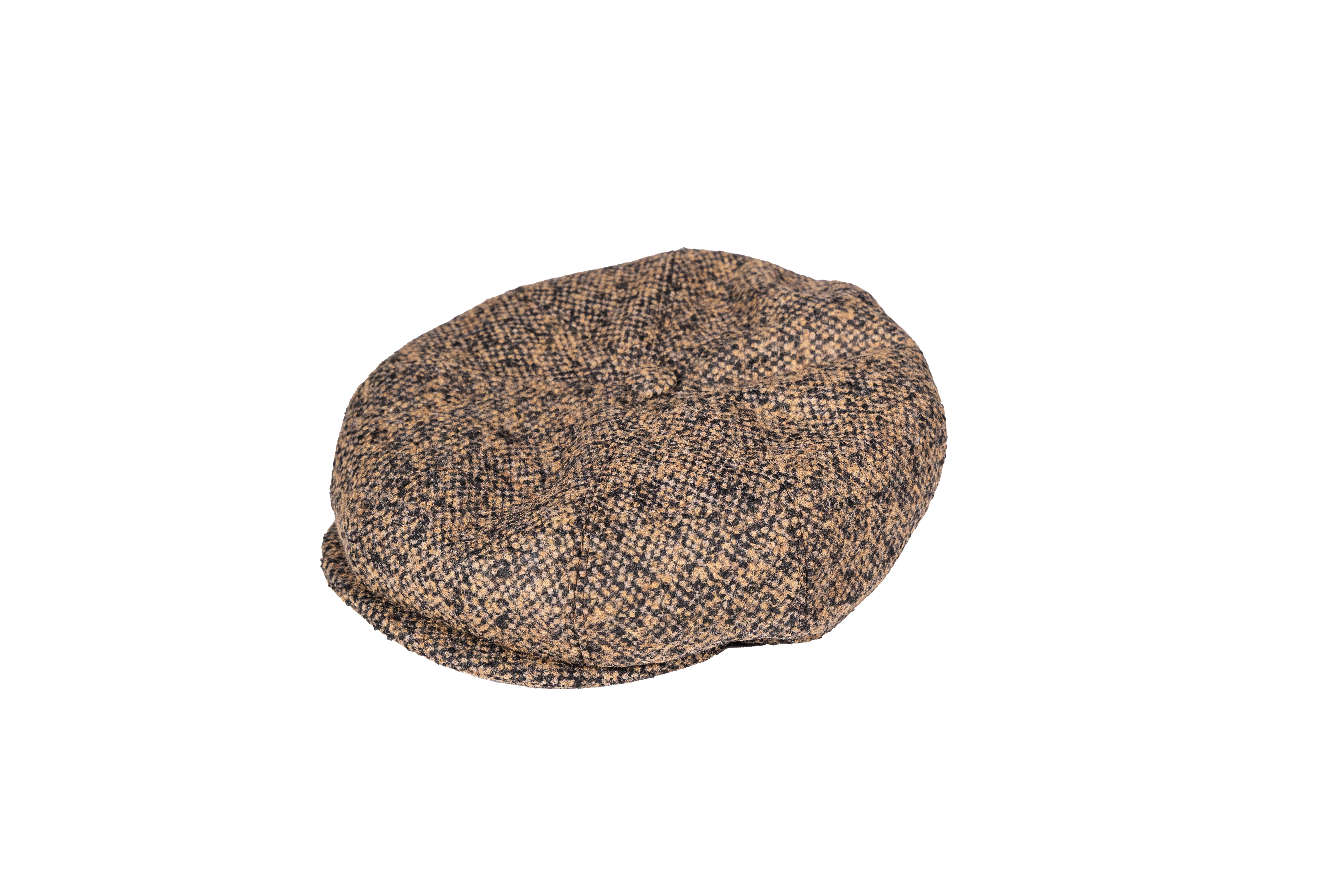 Coppola in lana con fodera stampata e dettaglio logo applicato a mano