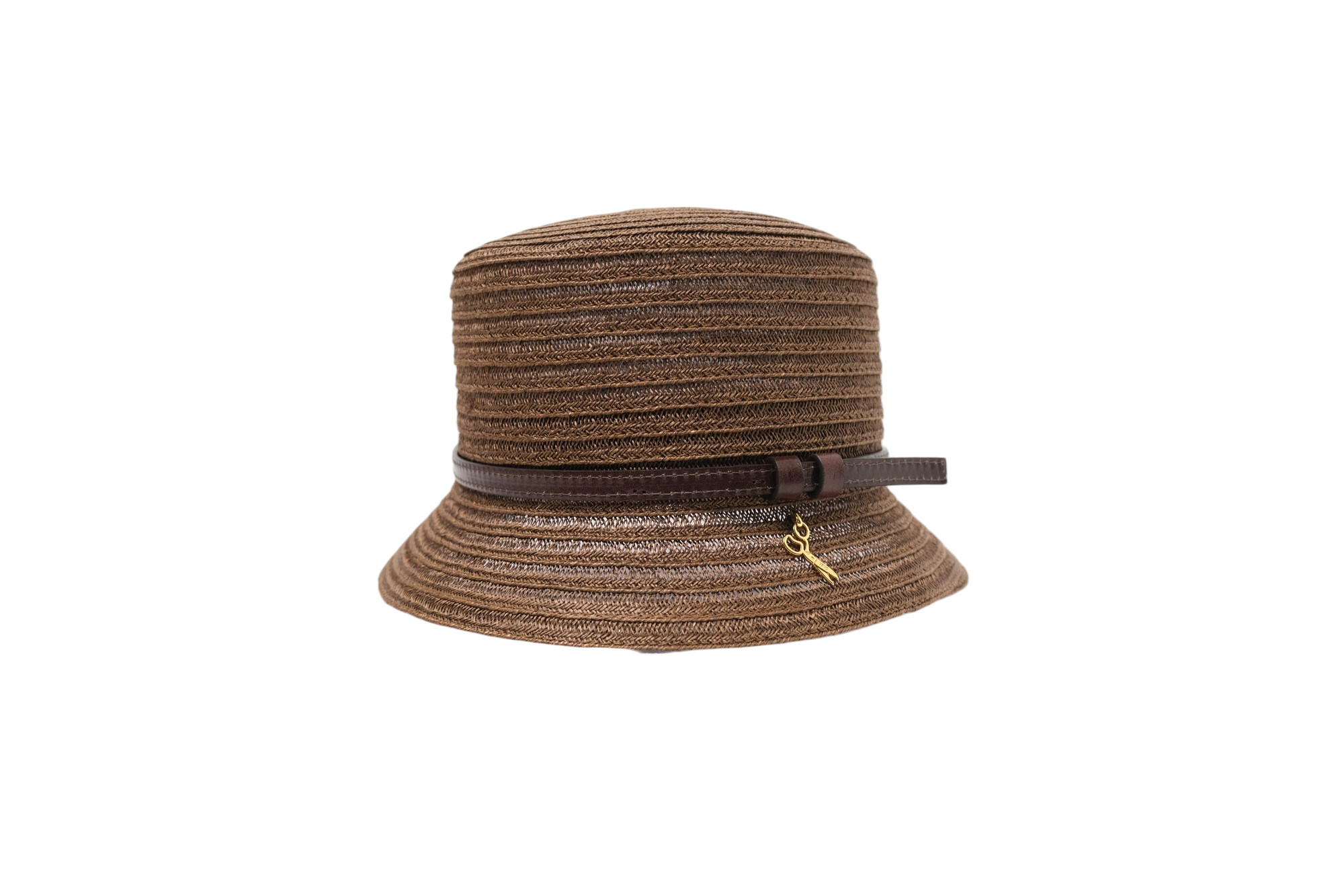 Pescatore in treccia di abaca con cinturino in pelle conpassanti e ciondolo oro