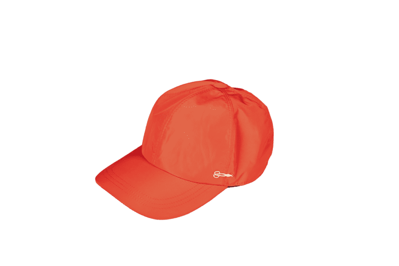 Baseball in nylon con chiusura elastica e dettaglio logo applicato a mano.