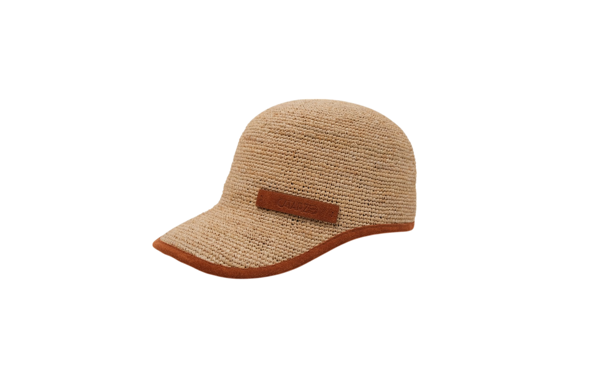 Baseball in raffia crochet con bordo e dettagli in camoscio