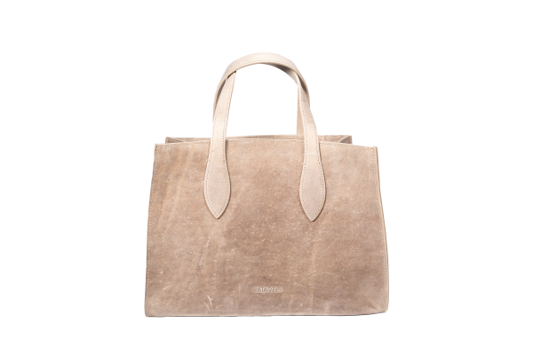 Bauletto in pelle invecchiata con manici e tracolla regolabile, chiusura con cinturino con gemelli, dotata di doppia tasca interna con dettaglio logo applicato a mano.