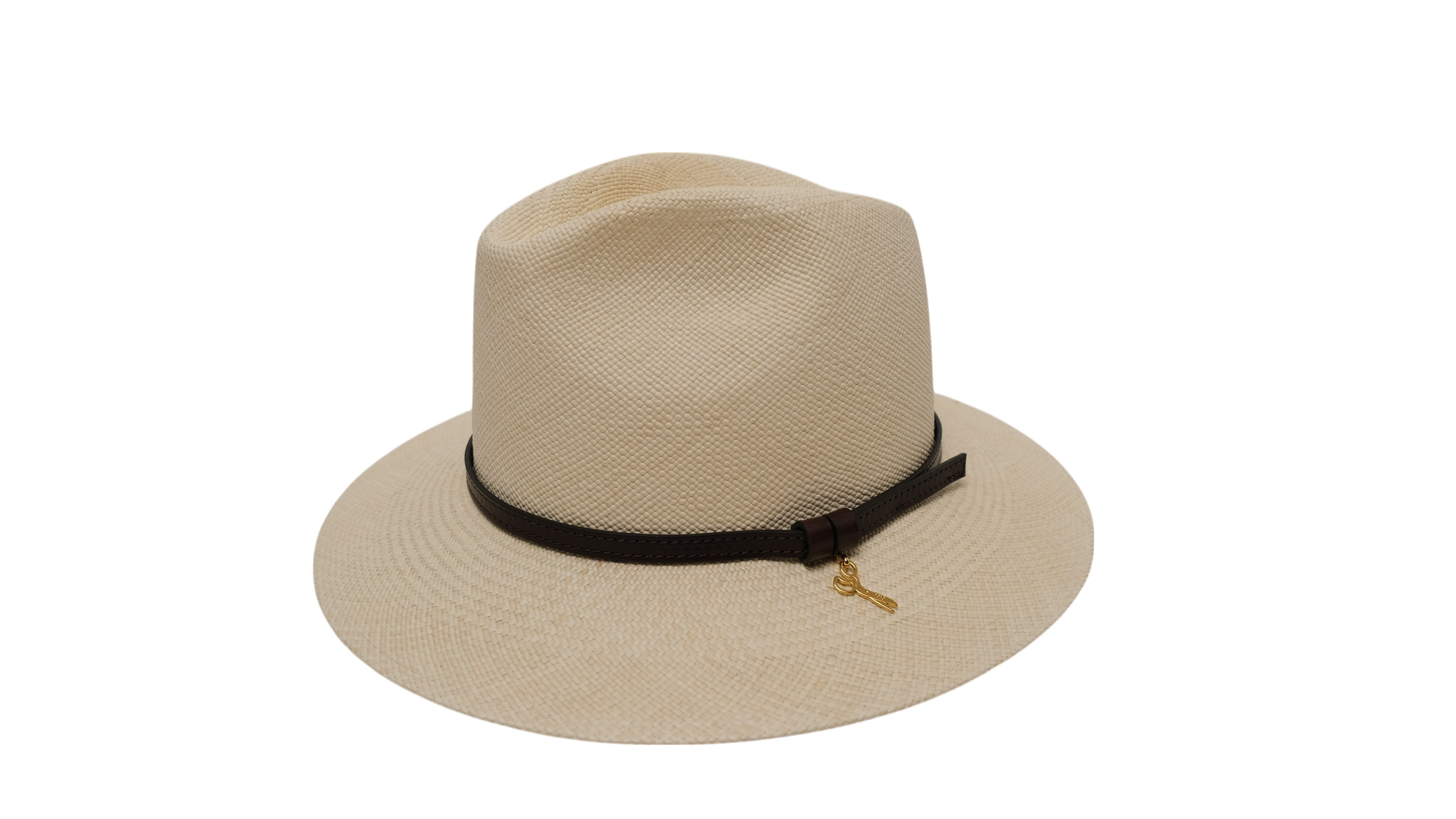 Lobbia in panama con cinturino in pelle e ciondolo oro